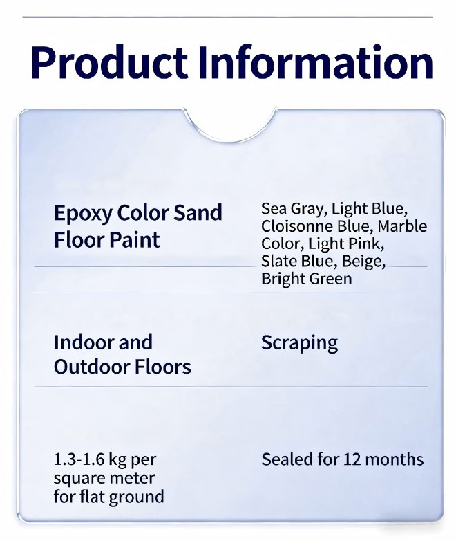 Epoxy colored sand self-leveling is a high-performance, seamless decorative flooring material composed of epoxy resin, natural colored sand, and special additives. It features automatic leveling, high adhesion, and excellent wear resistance, widely applied in interior decoration, commercial spaces, home renovations, and high-end showrooms.