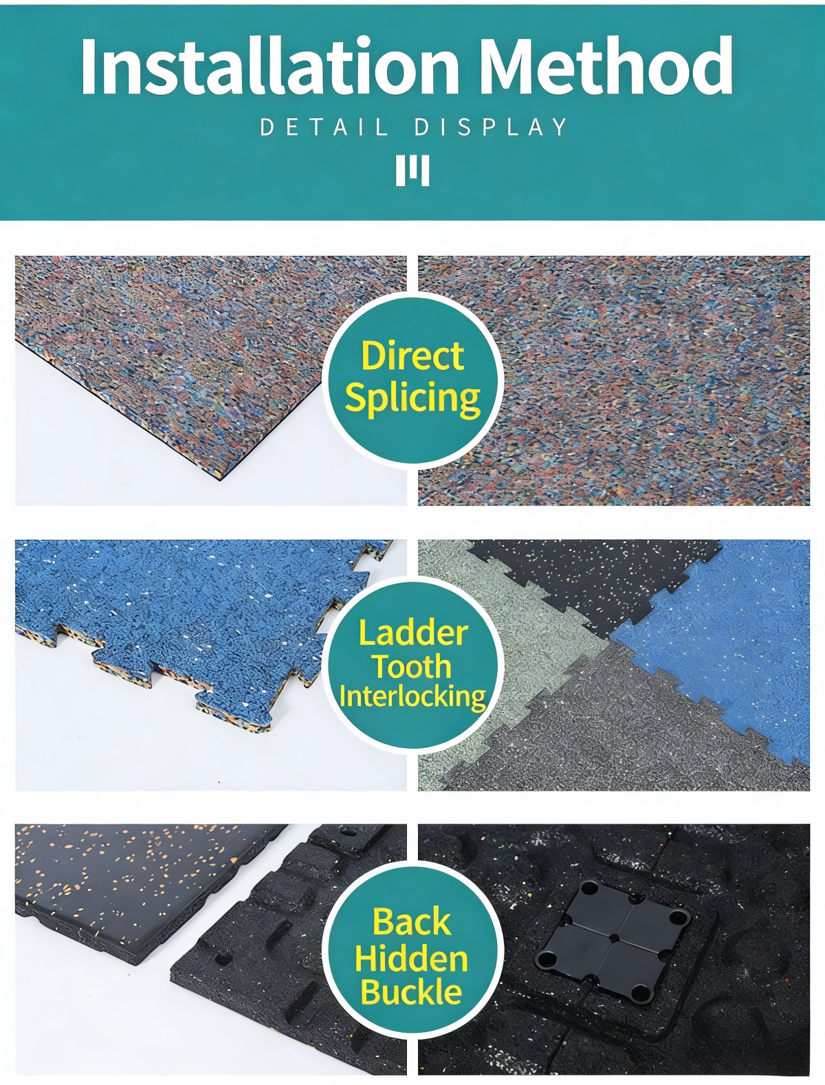Interlocking gym rubber mats are durable, shock-absorbent floor tiles designed for fitness spaces, home gyms, and high-traffic exercise areas. Made from high-density recycled or virgin rubber, they feature an interlocking edge design for easy assembly and stable installation without adhesive.These mats effectively reduce noise, cushion impact from weights and equipment, and protect floors from damage. They are non-slip, wear-resistant, waterproof, and easy to clean.
