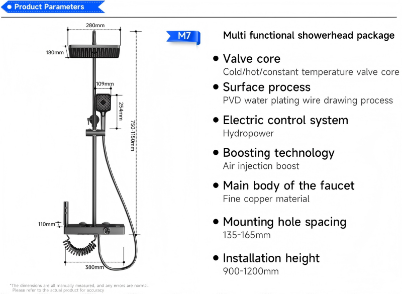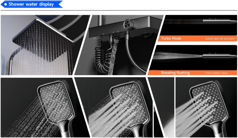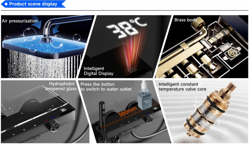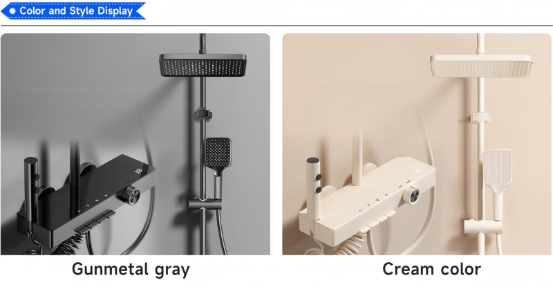 Thermostatic Constant Temperature Control: The digital display panel shows real-time water temperature, while the built-in thermostatic valve maintains consistent hot/cold water mixing, eliminating sudden temperature fluctuations for safe, comfortable showers.