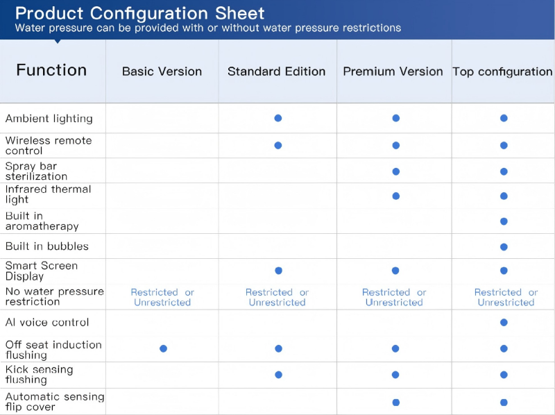 | Discharge Method | Standard floor drain configuration, with wall-mounted installation available upon request to suit diverse bathroom layouts. |