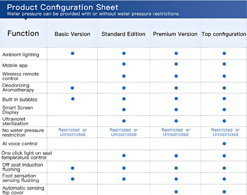 The Smart Toilet is an ideal choice for residential, commercial, and high-end bathroom renovations, seamlessly blending sleek aesthetics with functional innovation to redefine daily bathroom convenience.