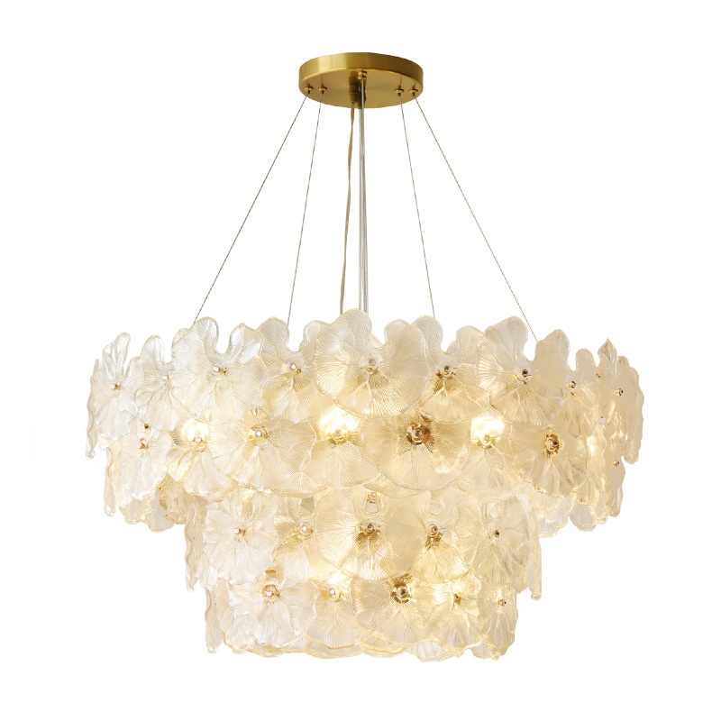 French Creative Lotus-Shaped Glass Gold Tri-Color Chandelier for Living Room