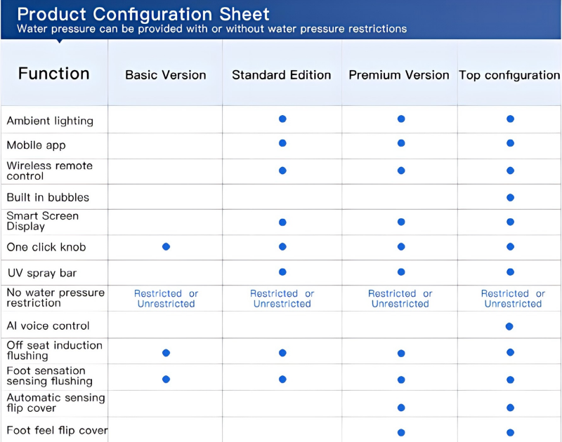 Dual Water Supply System Independent water circuits for feminine hygiene cleansing and toilet flushing, preventing cross-contamination and ensuring superior hygiene.