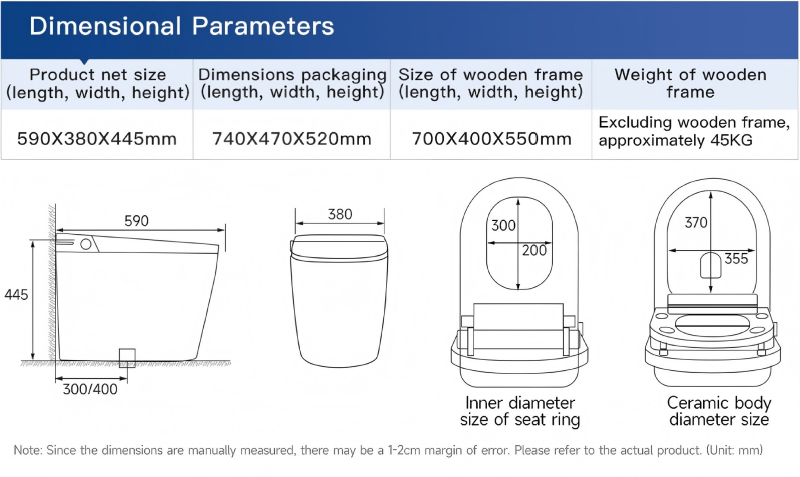 This Compact Smart Toilet is designed specifically for small-sized apartments and compact bathrooms, with a space-saving 58cm length that maximizes every inch of your space without compromising on premium smart features. It blends powerful performance, hygienic design, and modern convenience into a sleek, compact form factor.