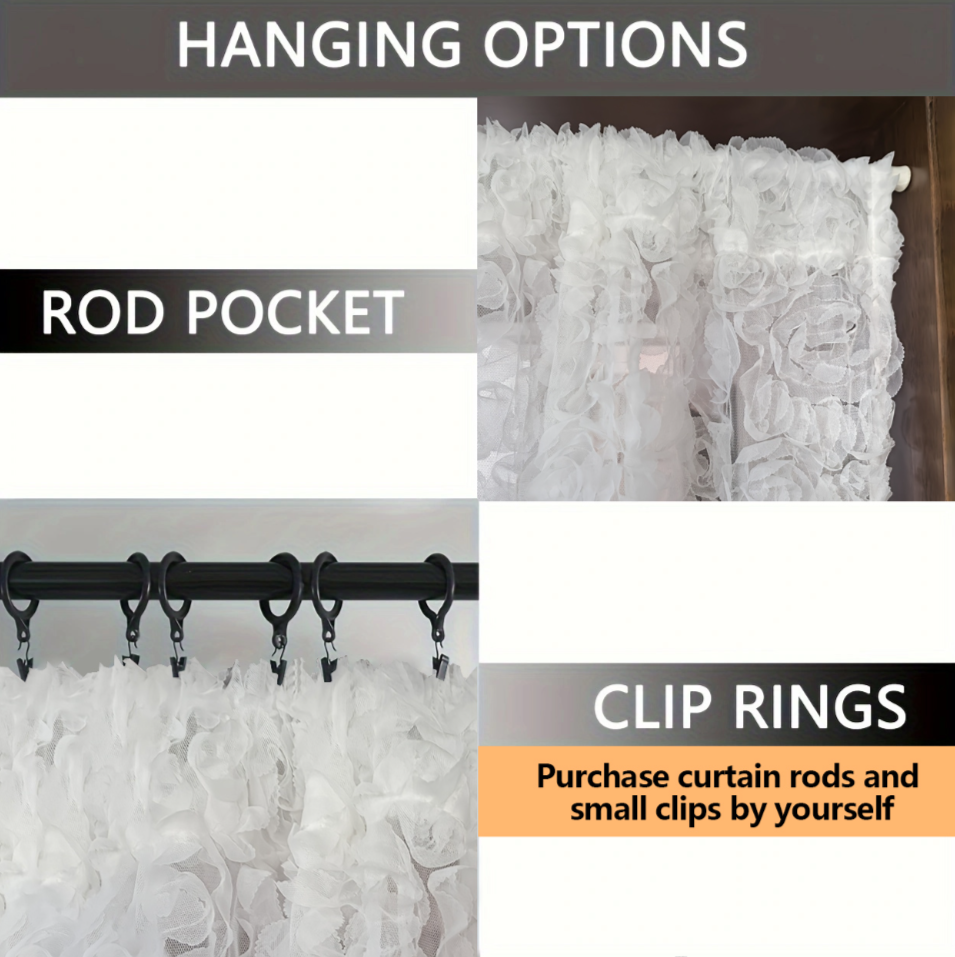 | Rod Pocket 3D Rose Embroidered Sheer Curtain | 132 | 61 | 335 | 155 |
